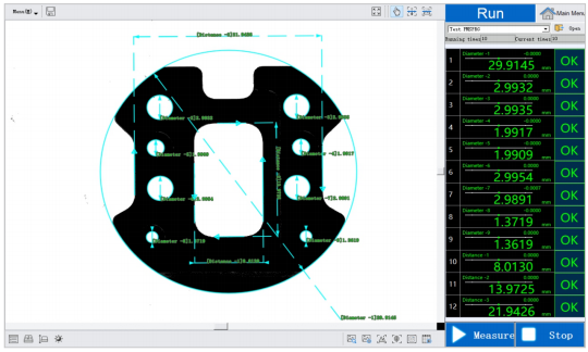 ② Circular Inner/Outer Diameter Inspection: Precisely measures inner/outer diameters, center coordinates, and roundness error of circular parts using edge-fitting algorithms.