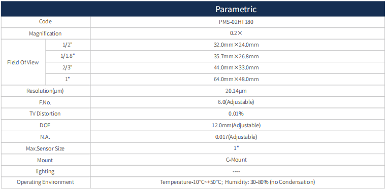 1. All using the object telecentric design, with high depth of field, high resolution, low distortion characteristics;
