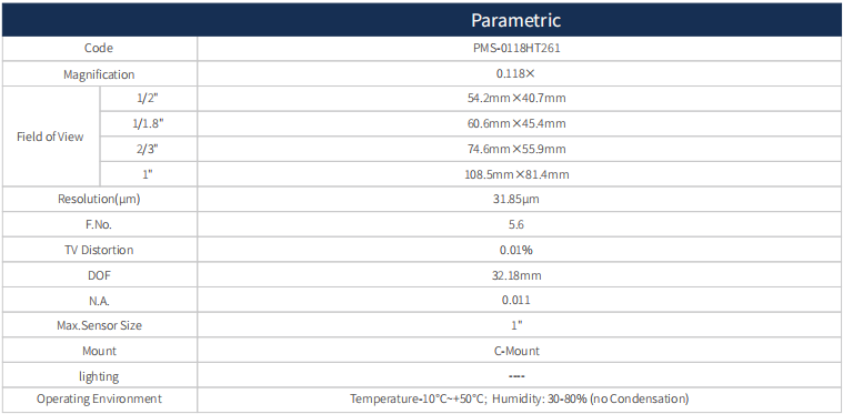 1. All using the object telecentric design, with high depth of field, high resolution, low distortion characteristics;