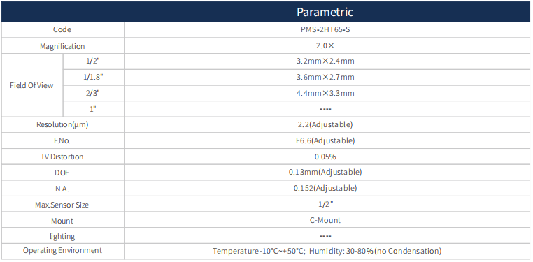 1. All using the object telecentric design, with high depth of field, high resolution, low distortion characteristics;