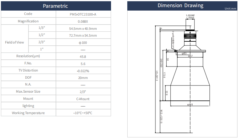 1. All using the object telecentric design, with high depth of field, high resolution, low distortion characteristics;