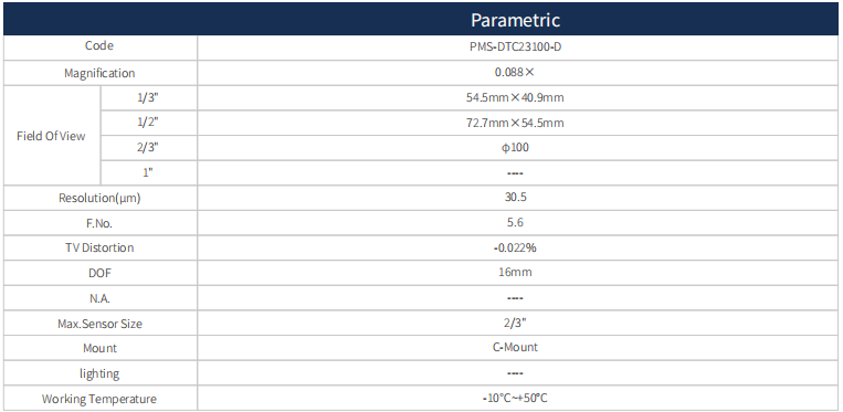 1. All using the object telecentric design, with high depth of field, high resolution, low distortion characteristics;