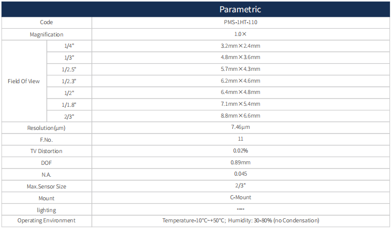 1. All using the object telecentric design, with high depth of field, high resolution, low distortion characteristics;