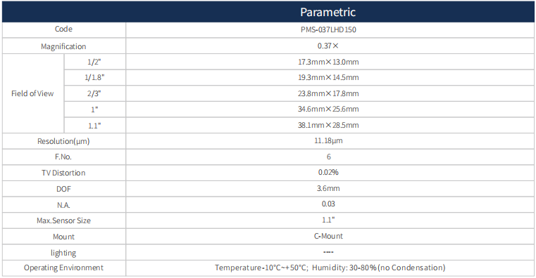 1. All using the object telecentric design, with high depth of field, high resolution, low distortion characteristics;