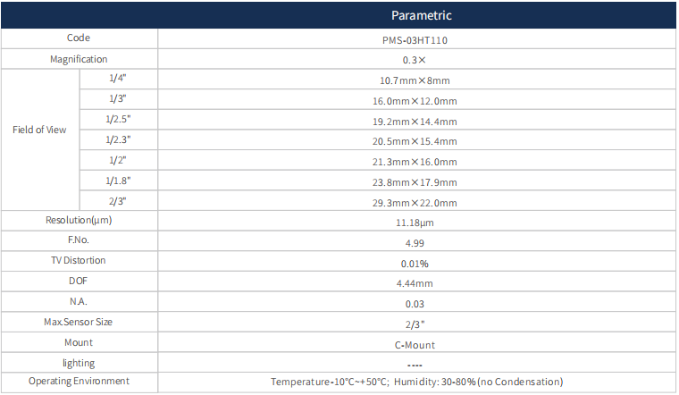 1. All using the object telecentric design, with high depth of field, high resolution, low distortion characteristics;