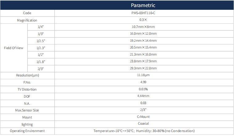 1. All using the object telecentric design, with high depth of field, high resolution, low distortion characteristics;