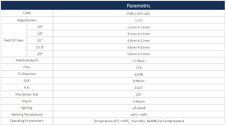 1. This series telecentric lens adopts objective telecentric design, which have features of high DOF, high resolution and low distortion;