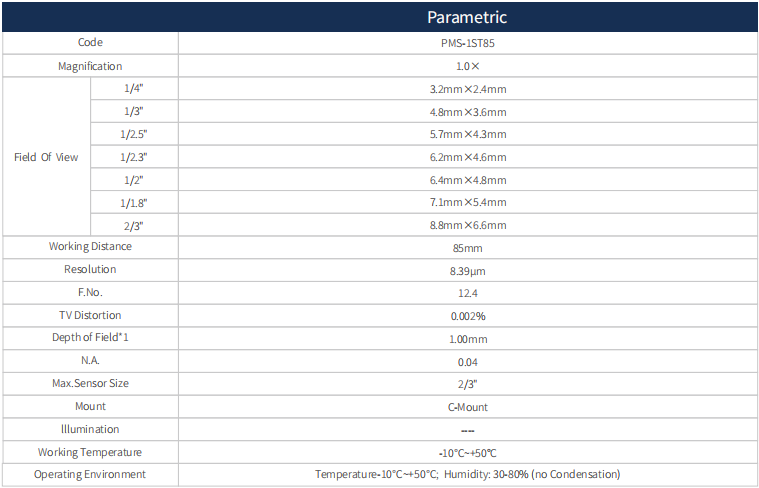 This Standard Telecentric Lens 1.0X, Max. sensor size 2/3", WD 85mm.
