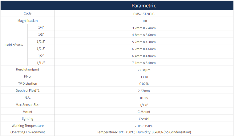 1. This series telecentric lens adopts objective telecentric design, which have features of high DOF, high resolution and low distortion;