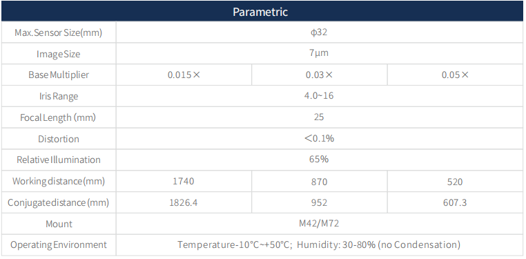 2. Compatible with 7 μm line array cameras;