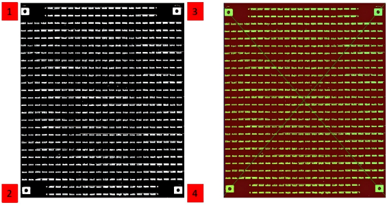 3. Height Calculation: In the 3D model of the positioned product, key points are selected from four square regions (1, 2, 3, and 4) to fit a reference plane. Subsequently, by calculating the height difference of each solder joint relative to this reference plane, precise height data for the solder joints is obtained.