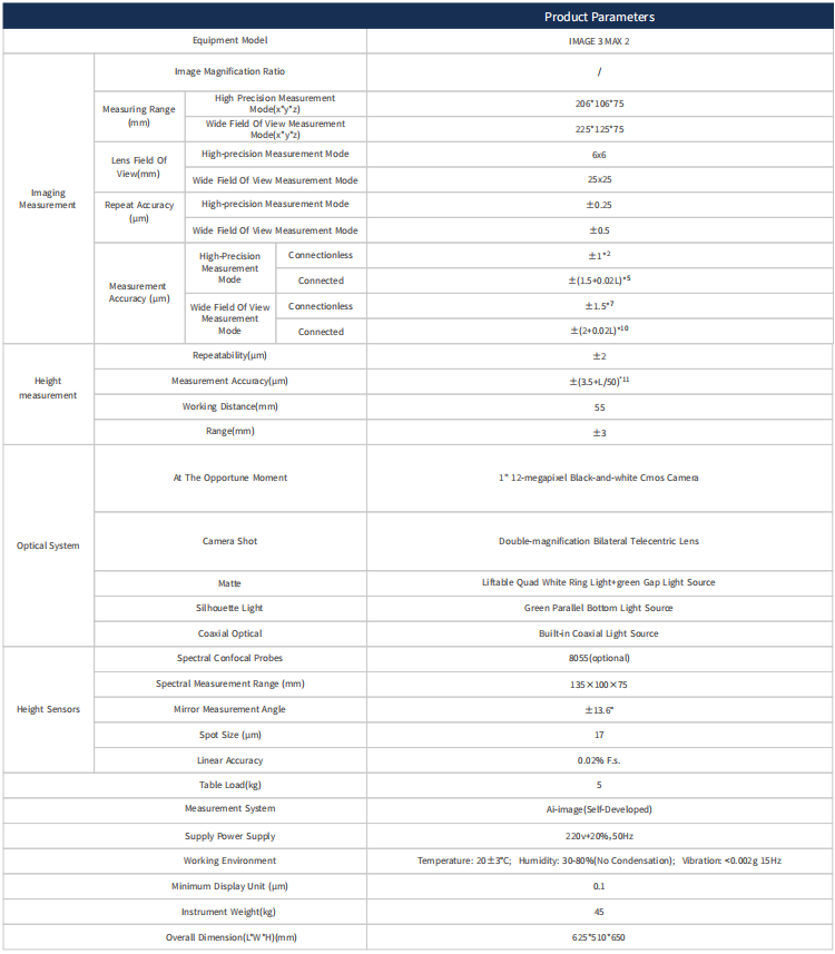 IMAGE 3 MAX2 Image Measuring Instrument Parameter