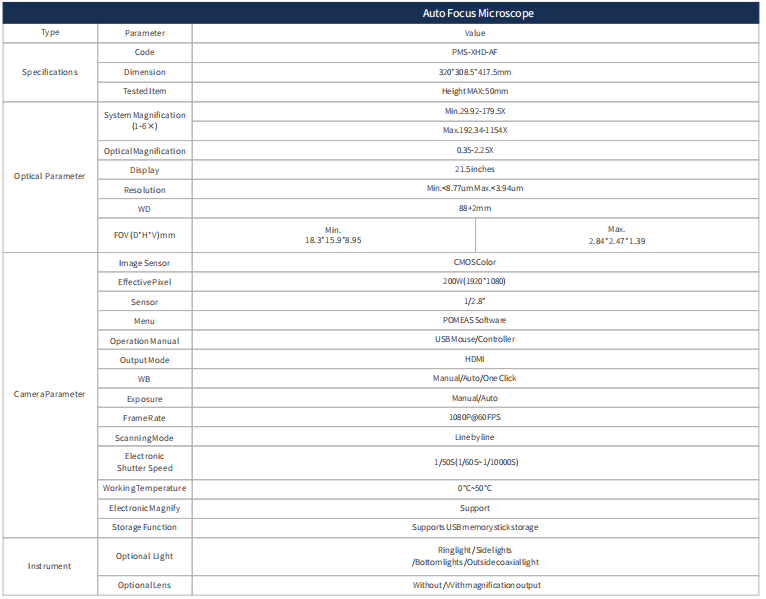 1.Auto focusing on the inspected parts, no need to focus manually;