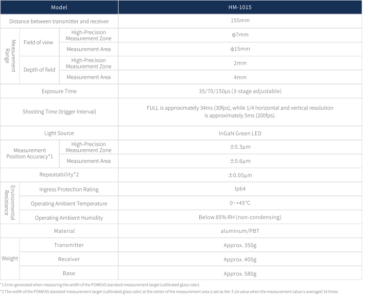 Telecentric Measurement System HM-1015 Parameters