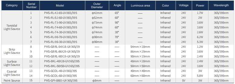 Ultraviolet light source has stronger energy than conventional visible light, some glues and materials with fluorescent powder can excite visible light of different colors after ultraviolet irradiation. Therefore, ultraviolet light is often used for detection items with anti-counterfeiting requirements.