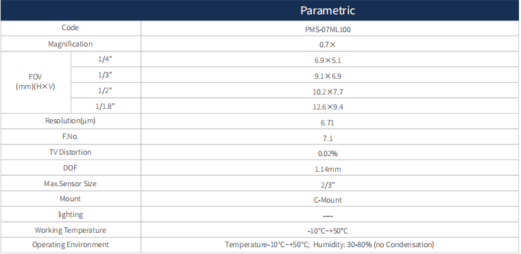 High resolution, low distortion, even brightness, suitable for high precision inspection and measurement.