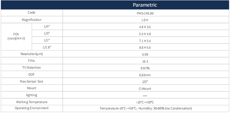 High resolution, low distortion, even brightness, suitable for high precision inspection and measurement.