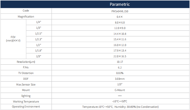 High resolution, low distortion, even brightness, suitable for high precision inspection and measurement.