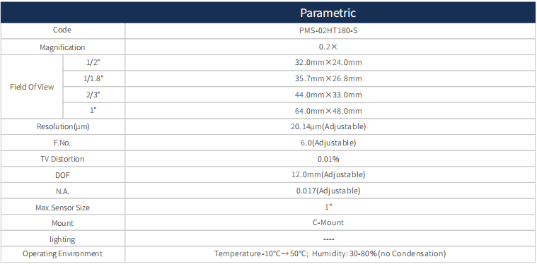 1. All using the object telecentric design, with high depth of field, high resolution, low distortion characteristics;
