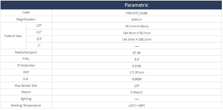 1. All using the object telecentric design, with high depth of field, high resolution, low distortion characteristics;