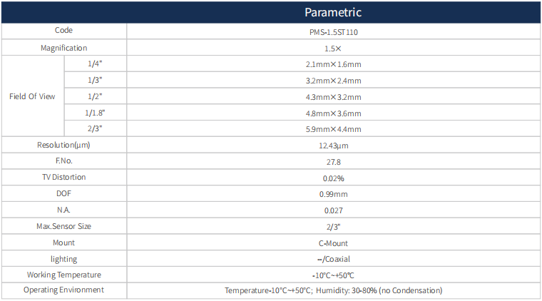 1. This series telecentric lens adopts objective telecentric design, which have features of high DOF, high resolution and low distortion.