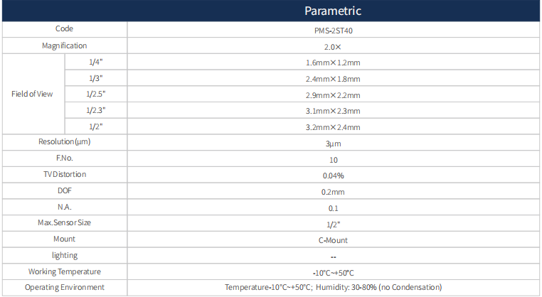 1. This series telecentric lens adopts objective telecentric design, which have features of high DOF, high resolution and low distortion;