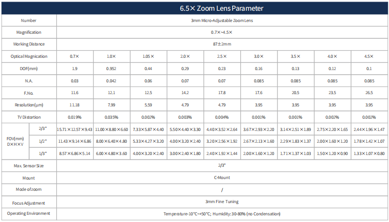 1. Professional optical design, optical magnification 0.7x-4.5x, magnification ratio 6.5:1.