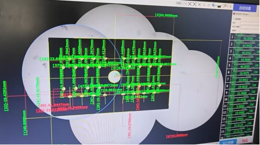 To meet the customer’s needs, we recommended the POMEAS IMAGE3 PRO-H image dimension measuring system, which utilizes its stitching measurement capability. Operators simply place the frame on the measuring platform and press a button to quickly measure key dimensional data—such as rectangular and circular holes, as well as positional accuracy—with precision down to the micron level.