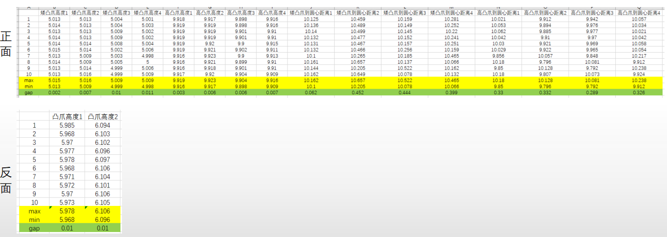 The inspection of the reverse side is similar to that of the front side, using the green area on the bottom surface to align with the reference plane. The red areas represent the protruding tabs; the height from these tabs to the reference plane is measured to ensure the dimensional accuracy of the reverse-side tabs. This targeted inspection effectively identifies any potential defects on the reverse side.