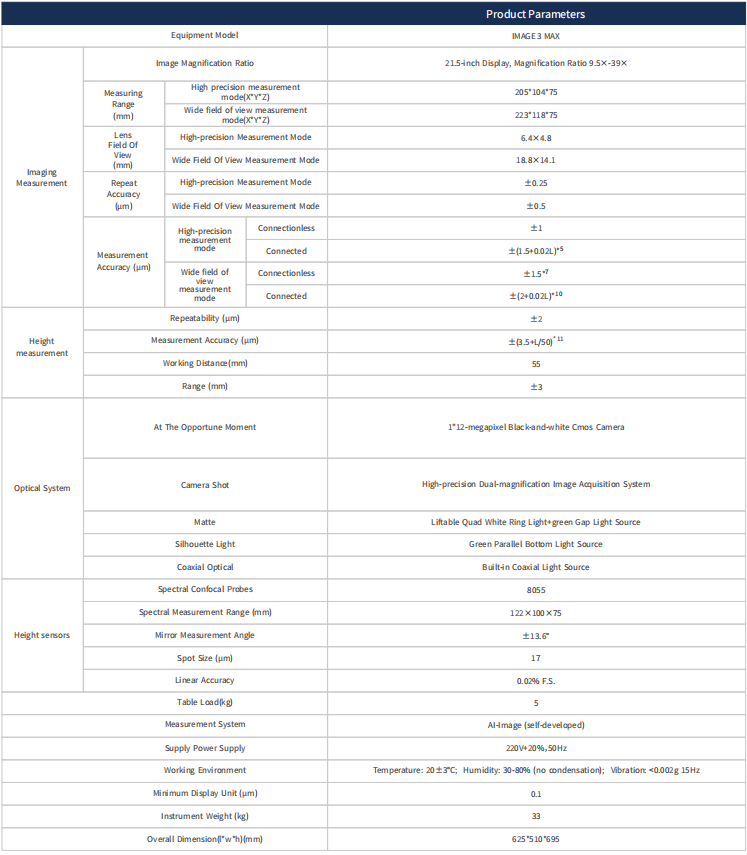 IMAGE3 MAX Image Measuring Instrument Parameter