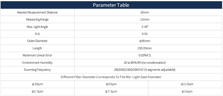 The PMS-SFS-D8020 Color Spectral Confocal Displacement Sensor is not only more accurate than traditional triangulation sensors, but also provides stable and consistent results when measuring different materials or shapes.