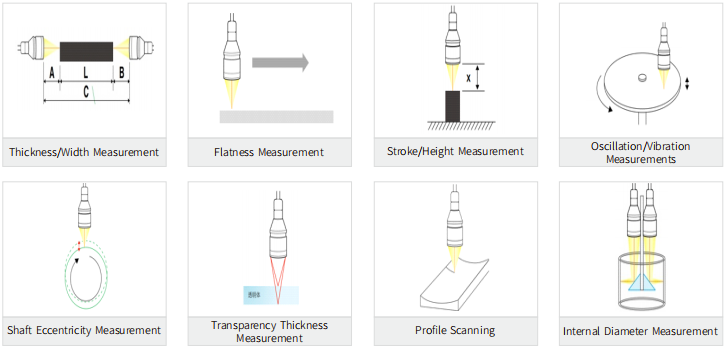 Widely used in electronics, semiconductor, panel, equipment and other industries. Measurement of height, segment difference, thickness, flatness, contour of glass, ceramics, mirrored metal, such as cell phones, PCB, tempered glass screen protector, semiconductor wafers.