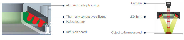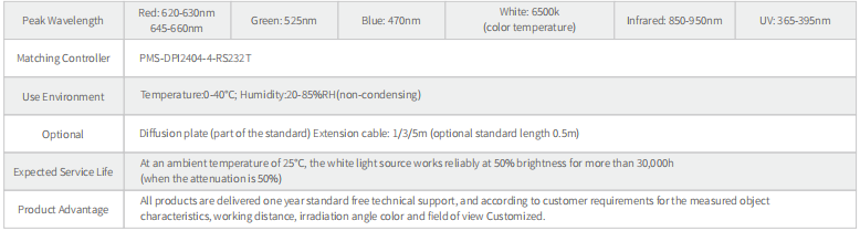 Ring light is made of LED array optimized by structure, with stable performance and convenient installation. Direct irradiation on the measured object with different irradiation angles and different color combinations can avoid shadow phenomenon and highlight imaging characteristics. It can also be used in combination with the diffuser plate to make the light more uniform and soft. It is one of the most widely used light sources in machine vision.