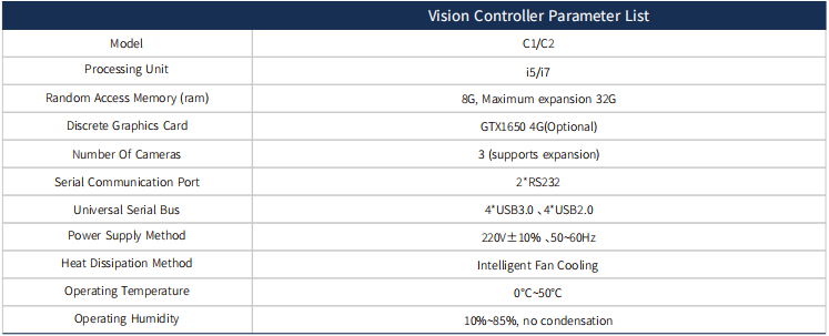 The main function of visual controller C2 is size measurement (length, brightness, height, etc.); Alignment and positioning (printing alignment, sample grabbing, assembly and fitting, etc.; pattern recognition (barcode character recognition, error, omission and inversion)